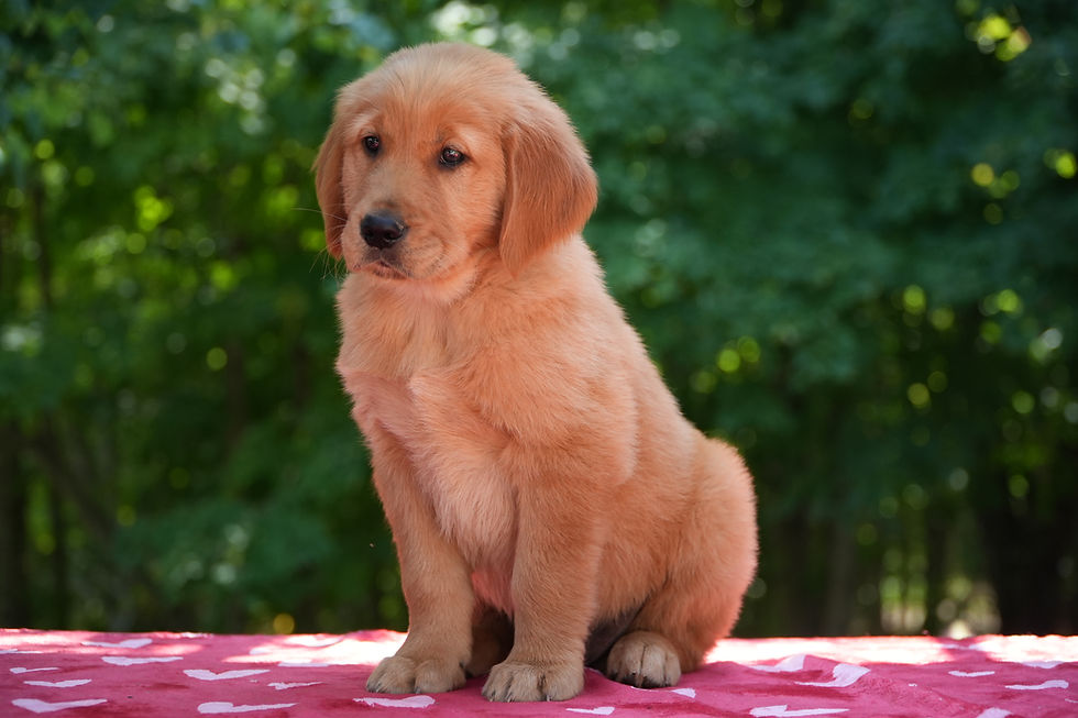 Each of our Golden babies will go to their new family pre-spoiled and ready to play! Each puppy will come with a vet check, up to date on age appropriate vaccinations, and a 1 year health guarantee against life-threatening hereditary congenital defects. Each puppy is socialized with adults, small children, the farm kitties, and other dogs! If needed, shipping is available for an additional price. All puppies are limited AKC registered. Feel free to contact us if you have any questions!